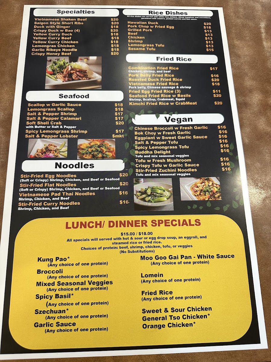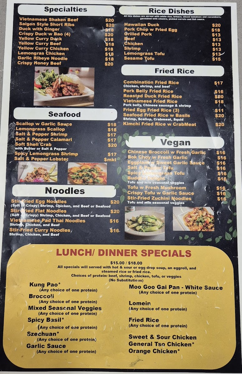 The culinary star of Dong Nai is undoubtedly their pho, specifically the PHO DONG NAI, which comes packed with tender sliced brisket, rare chopped filet mignon, and a beautifully torched soy-marinated egg. Diners rave about the broth, which is rich, flavorful, and authentic—an essential characteristic of any great pho. Other must-try pho options include the PHO OCEAN and the PHO TRIO with its delectable meatballs, all served at reasonable prices. Vegetarians will appreciate the PHO BUDDA, a fresh and fulfilling mix of soft tofu and seasonal veggies.